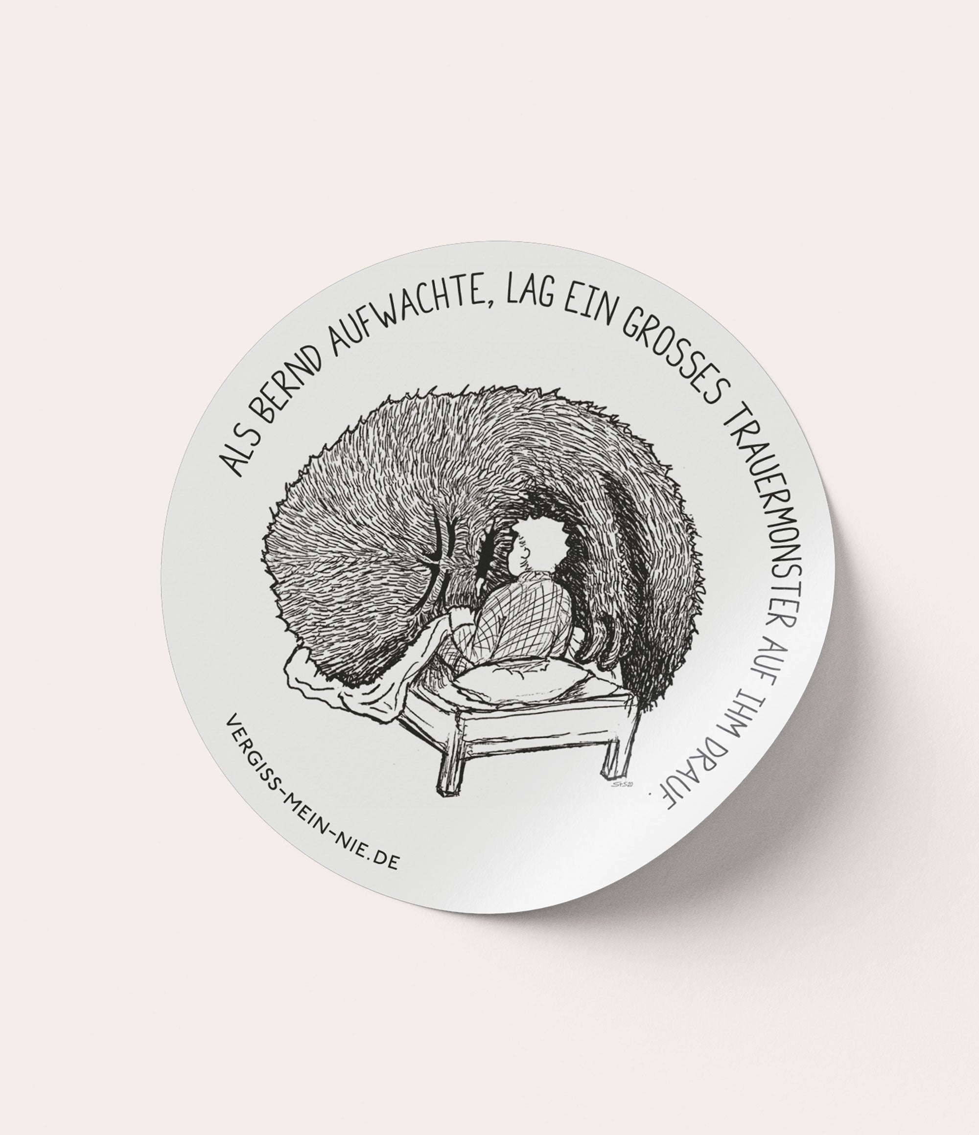 Dieses Trauermonster könnte an dir kleben, wenn du aufwachst und auch, wen du einschläfst. Mit diesem Statement-Aufkleber kommt das Trauermonster in dein Leben und bleibt dort, wo du es sehen willst. Aufkleber, weiß, rund, 70 x 70 mm, wetterfest.