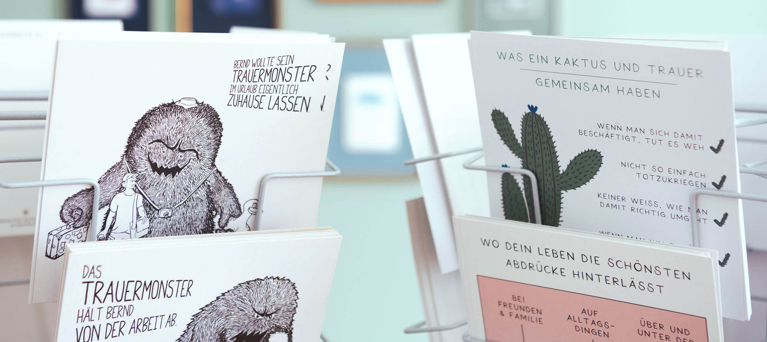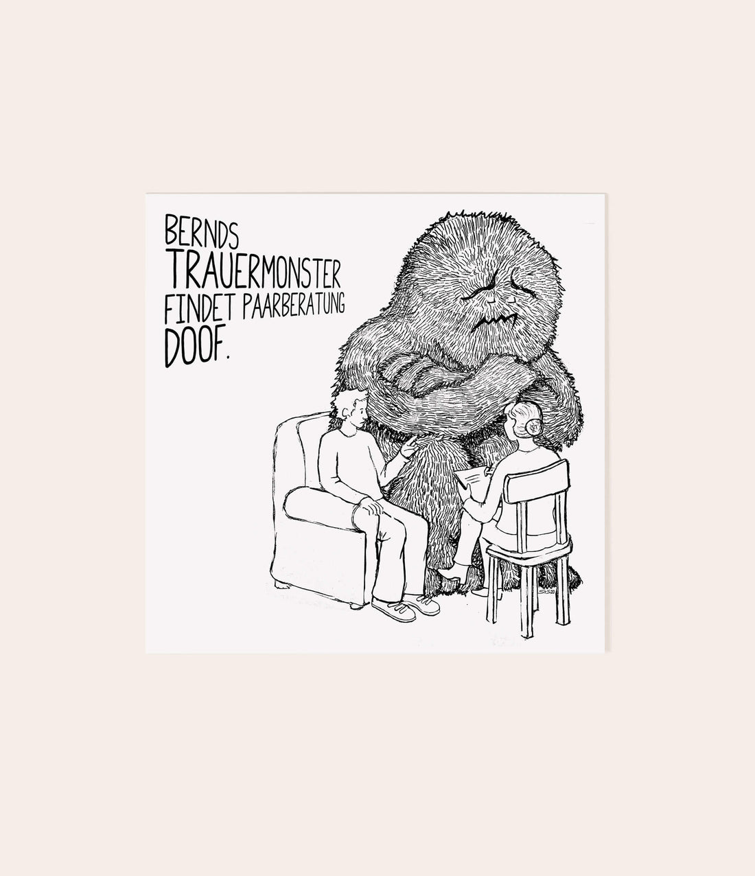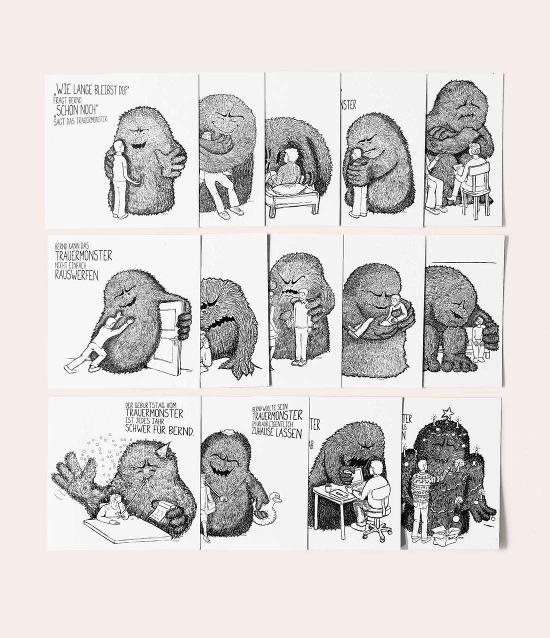 Plötzlich ist es da. Das Trauermonster. Ein nerviger Mitbewohner. Es ist fies. Und manchmal auch überraschend liebevoll. Dann wieder streng. Schwer. Spezieller Humor. Taktlos. Oft sentimental, fast sensibel. Und dann raubt es einem noch vor dem Aufstehen den Atem. Kommt dir das bekannt vor?